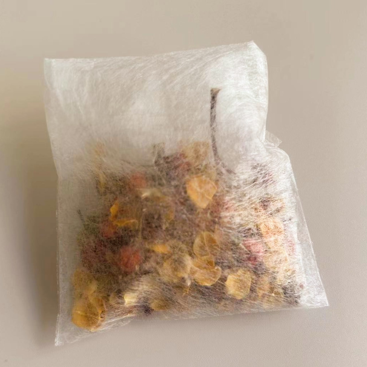 Non - dokuma boş çay poşeti hem toz çayı hem de toz çayı için uygundur. Non - dokuma kumaş birçok kalınlığa sahiptir ve farklı gram ile ayırt edilir. Genellikle 18 g / 23 g / 25 g / 30 g dört kalınlığımız var. Isı sızdırmazlığı ile kapatılabilir.